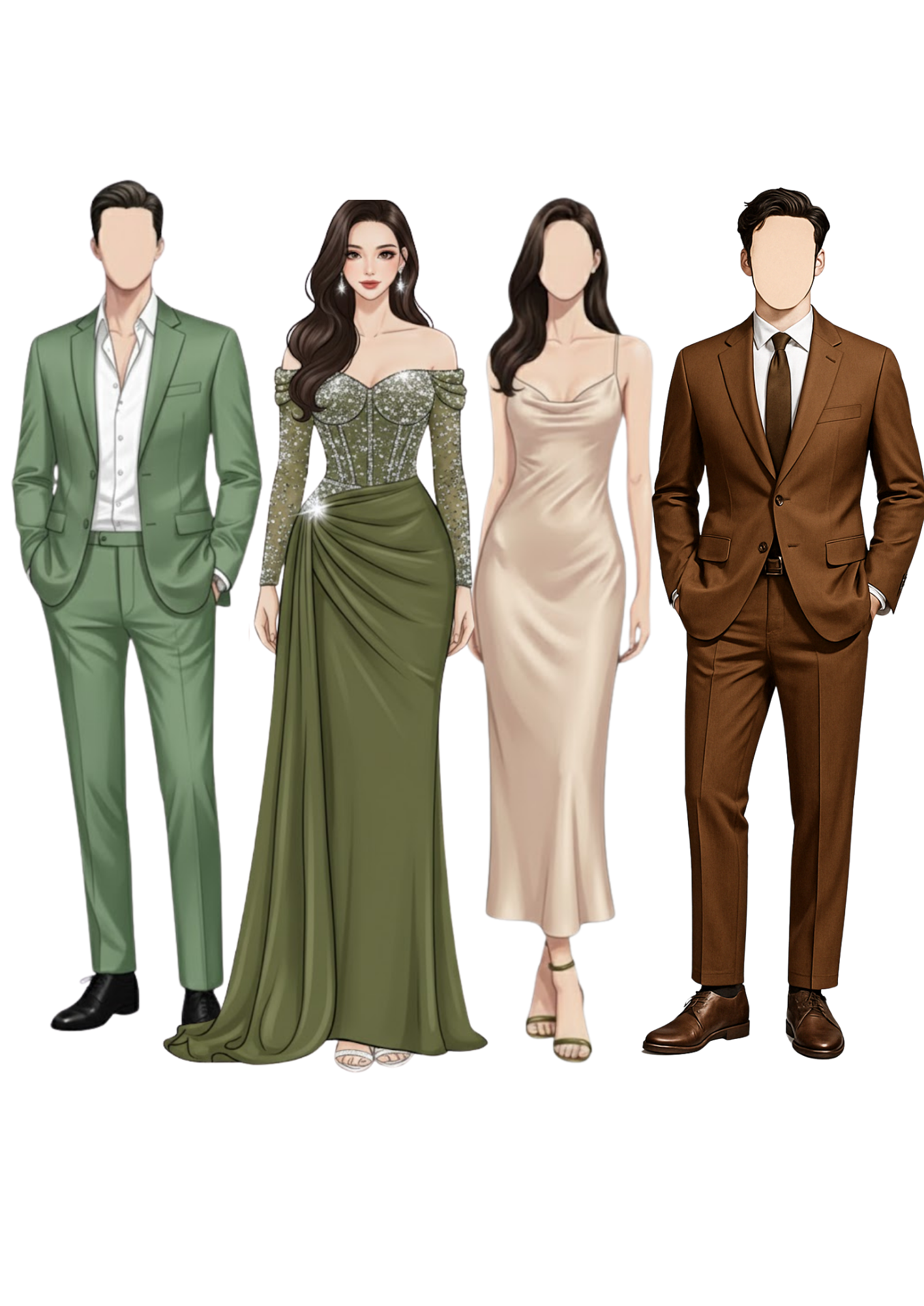 semi-Formal Attire following the color palette below