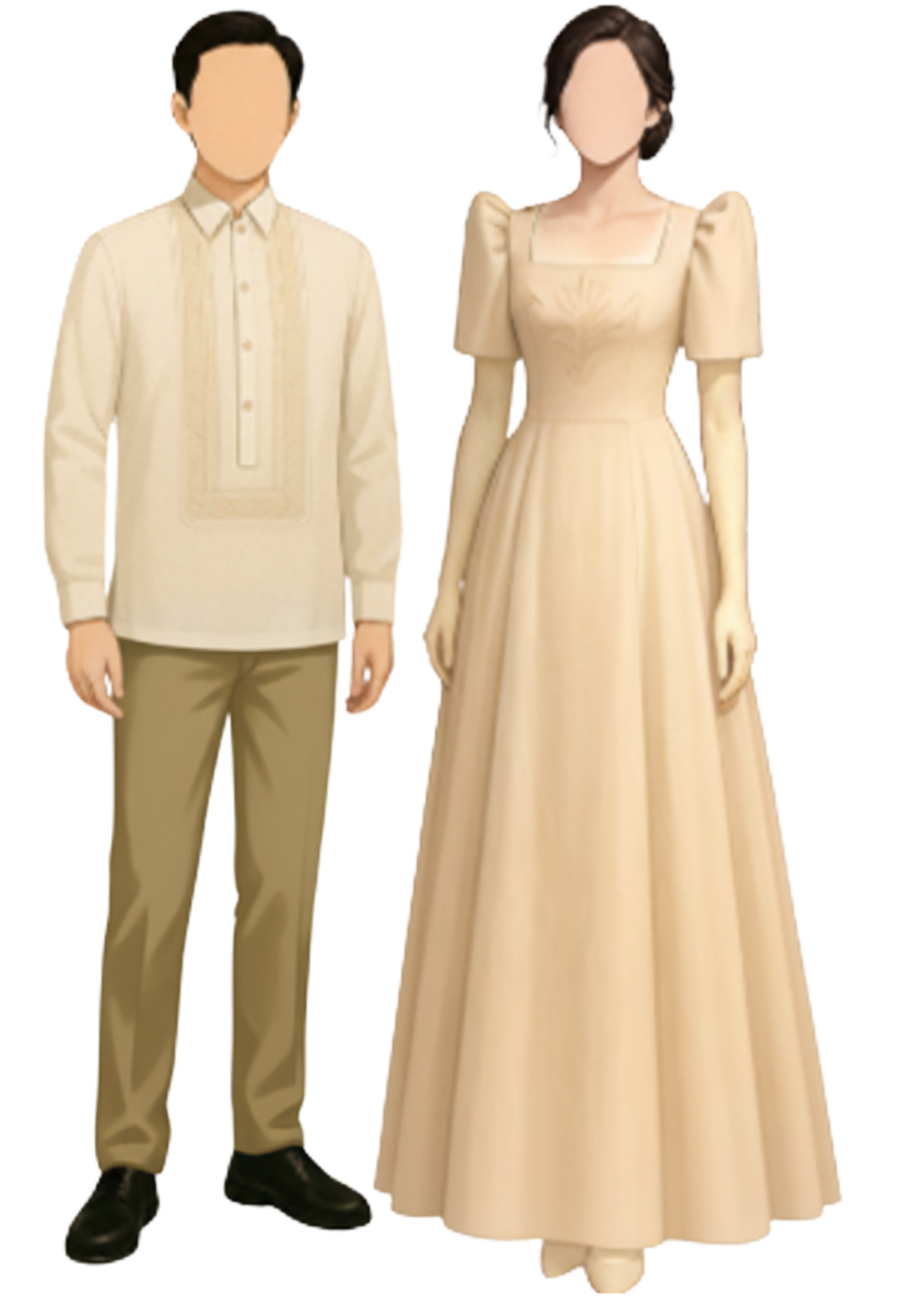 Gentlemen – Barong Tagalog with light or neutral-colored trousers