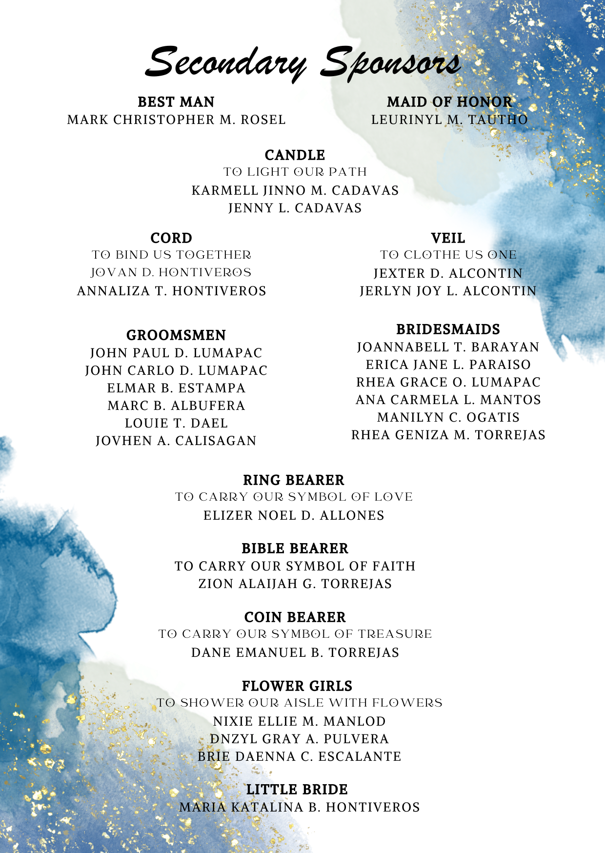 With all the blessings that God poured out on us we cannot ask for more. Your presence and prayers are all we request. But should you still believe that a gift is worth giving, monetary gifts for our future would be much appreciated.