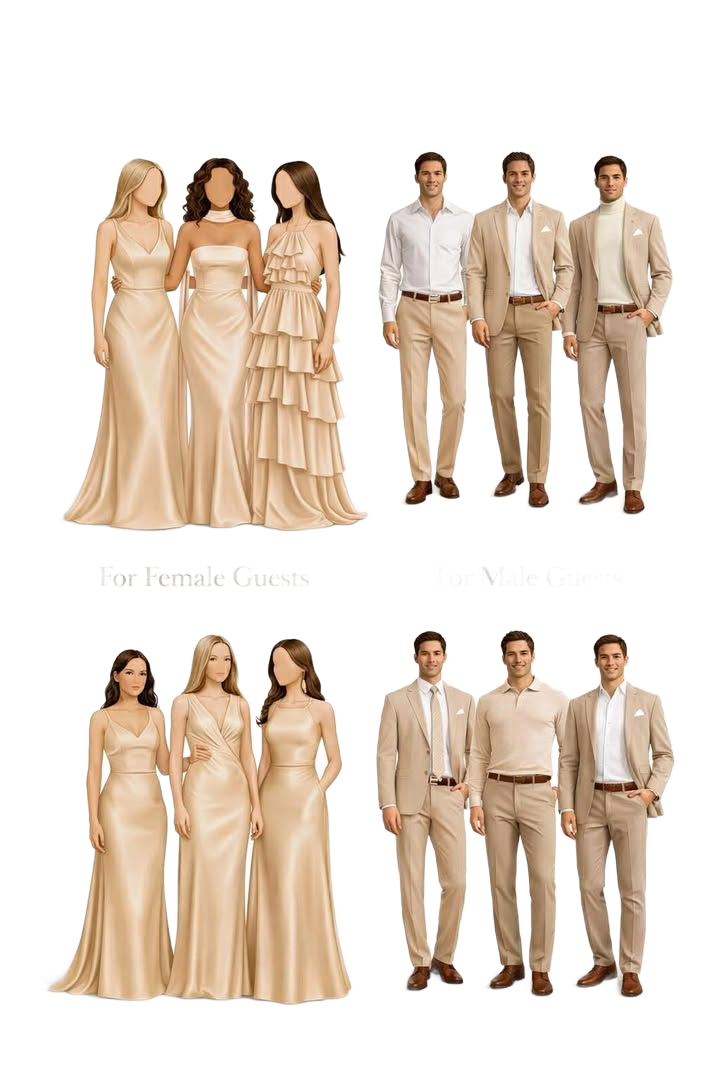 Adorn yourselves in the warmth of champagne hues, as we gather to celebrate a love story unfolding.